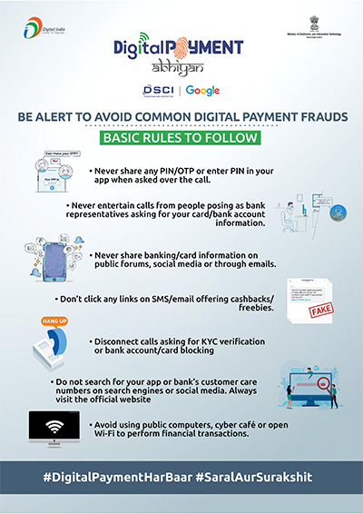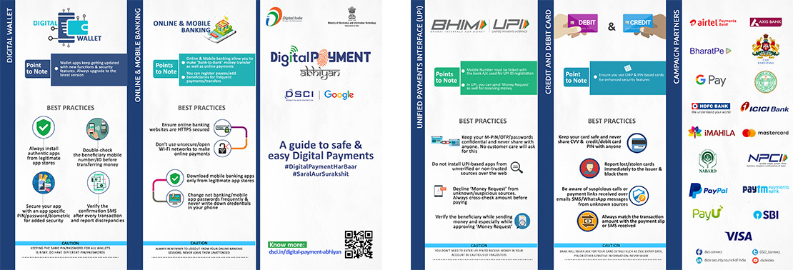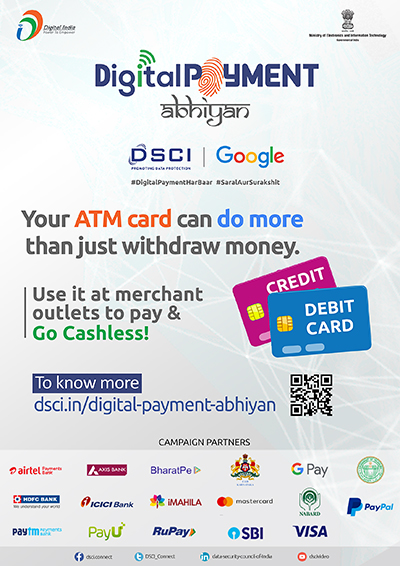 With this vision, Data Security Council of India in association with Ministry of Electronics and Information Technology (MeitY) and Google India have crafted an awareness campaign 'Digital Payment Abhiyan' aimed at increasing adoption of Digital Payments and educate citizens on safety and security best practices of payment channels. The campaign is supported by diverse ecosystem partners ranging from banks, financial institutions, State Government, payment institutions, NBFCs, who will further amplify the campaign outreach and play a key role in reaching out to consumers.